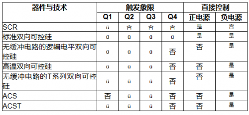 雙向控硅、ACS和ACST可以在每個象限或只在部分象限被激活,具體情況視開關所采用的半導體技術。
